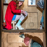 Ein Haus, das zu klein ist und darin ein Mann, der zu groß ist. Ein Haus, das zu klein ist und darin eine Frau, die zu groß ist. Sie leben Tür an Tür. Er ist Komponist - sie liebt Blumen. Wenn etwas im Haushalt fehlt, sei es der Zucker, oder ein paar Eier, dann helfen sie sich gegenseitig aus. Sie scheinen wie für einander gemacht. Und so verlieben sie sich eines Tages und sie zieht bei ihm ein. Das Haus ist zwar klein, aber die Liebe sehr groß. Groß genug, um sich so nah zu sein. Ein Zusammenleben auf Dauer auf engem Raum gestaltet sich in den meisten Fällen nicht so einfach, wie man es sich vorstellt. Und was das im Konkreten bedeutet, wenn es plötzlich zu eng wird, zeigen uns die beiden Akteure Judith de Joode und Rutger Remkes ganz ohne Worte auf eine sehr berührend humorvolle Weise – denn wer keinen Freiraum hat, muss sich im wahrsten Sinne des Wortes verbiegen. Auch die jeweilige Erwartungshaltung kann sich unterscheiden und so gehen bei dem Versuch miteinander zu leben Freude und Enttäuschung Hand in Hand. Auch das gilt es auszuhalten.